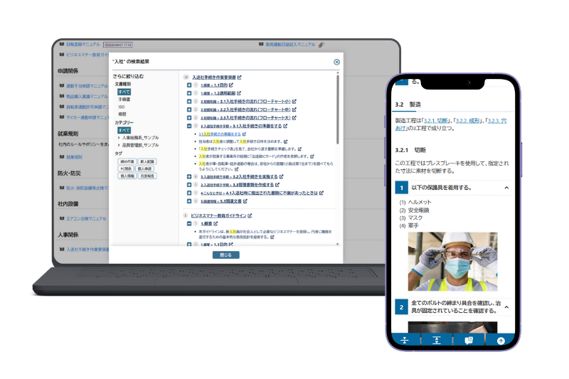 社内文書を資産化し、継続的に活用・進化させる仕組みによって、マニュアルDXの実現をサポートします。