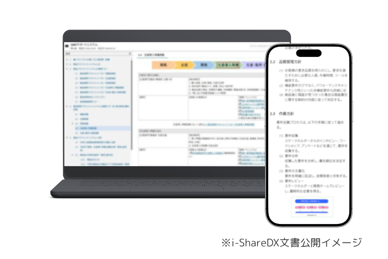 i-ShareDXは、業務マニュアルや手順書、ISO文書などの社内文書を効率的に作成・管理・共有し情報を資産化するためのクラウドシステムです。