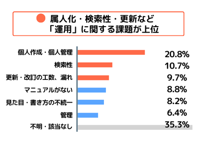 その一方で、話を深めると、業務手順やルールがマニュアルとして整理・共有されておらず、取り組みが前に進まないケースが多く聞かれました。